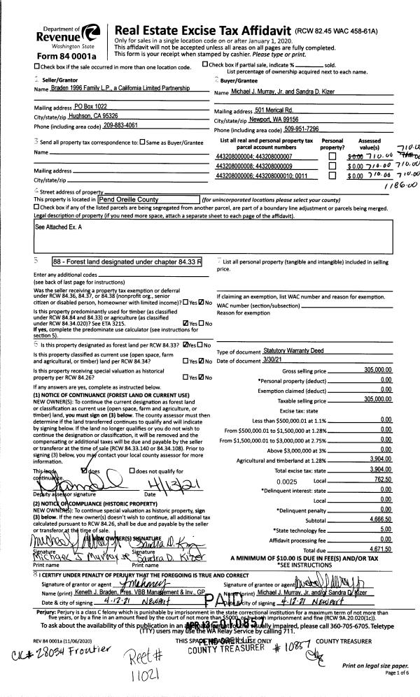 | 1 | 03/30/2021 | STATUTORY | Conv Doc Type | BRADEN 1996 FAMILY LP | MICHAEL J MURRAY JR AND SANDRA D KIZER | | | $305,000.00 | 10857 | 20210343646 |