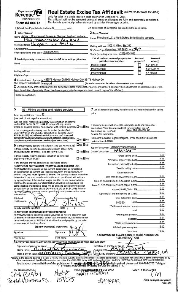 | 2 | 02/27/2025 | STATUTORY | Conv Doc Type | PRONGHORN LLC | PRONGHORN LLC | | | $0.00 | 14999 | 20250358118 |