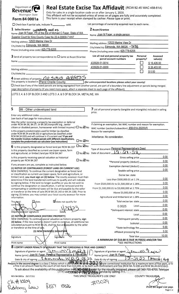 | 3 | 12/28/2022 | PERSONAL R | Conv Doc Type | MICHAEL FAGER | JOAN M FAGER | | | $0.00 | 13029 | 20230351692 |